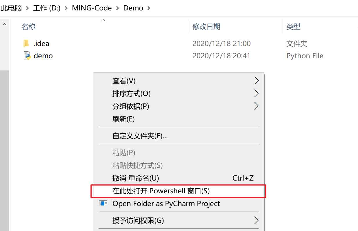首先先进入脚本所在的文件夹,然后按住 Shift 和 右键,再点击如图位置打开 PowerShell
