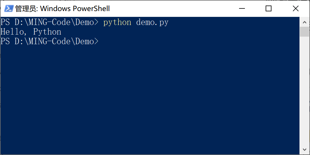 然后在 PowerShell 中输入 python dmeo.py,就可以执行这个 python 脚本啦。