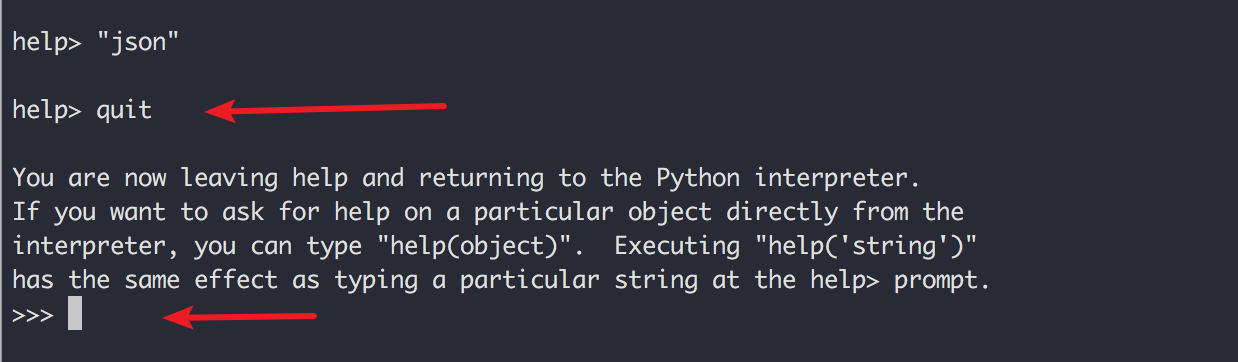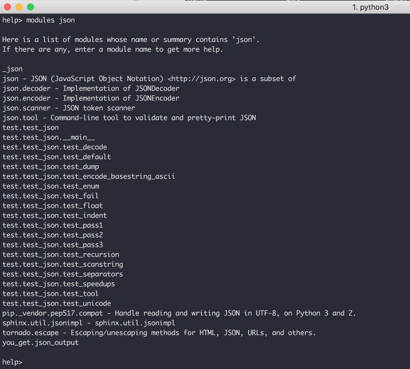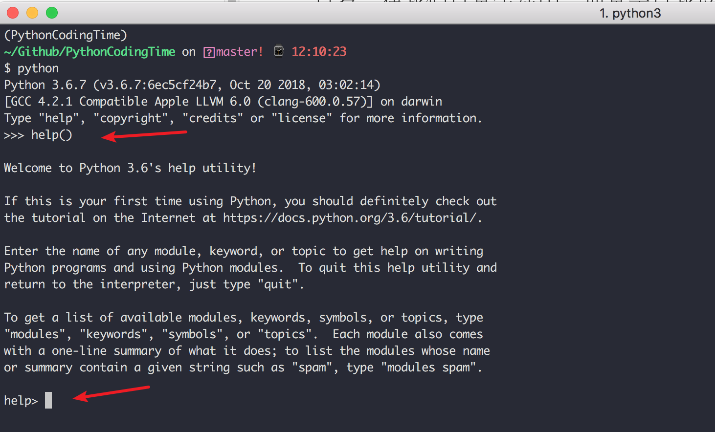 在 console 模式下,输入 help() ,可以看到输出了一段帮助文档,教你如何使用这个 help,当你看到提示符变成了 help> 时,这时候就进入了 help 模式。