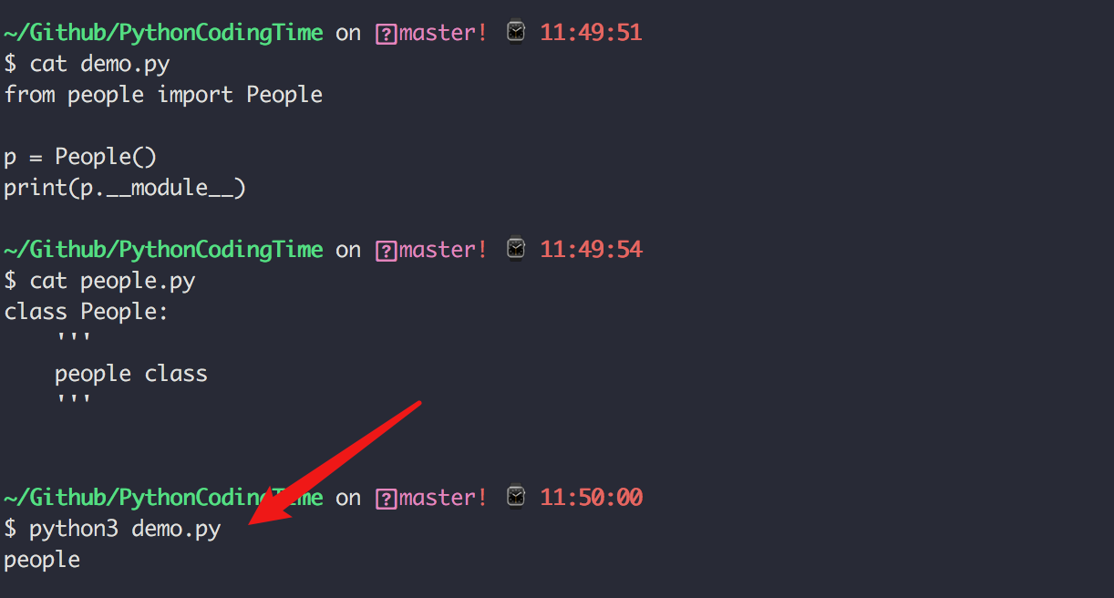 如果将上面的代码放入 demo.py,并且从 people 模块导入 People 类,其值就是 people 模块