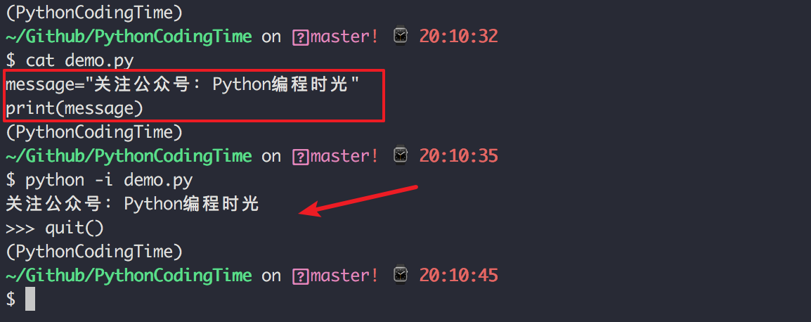 这两种都会进入 Python Shell,如果脚本并无异常,最终也会进入 Python Shell 模式,需要你手动退出