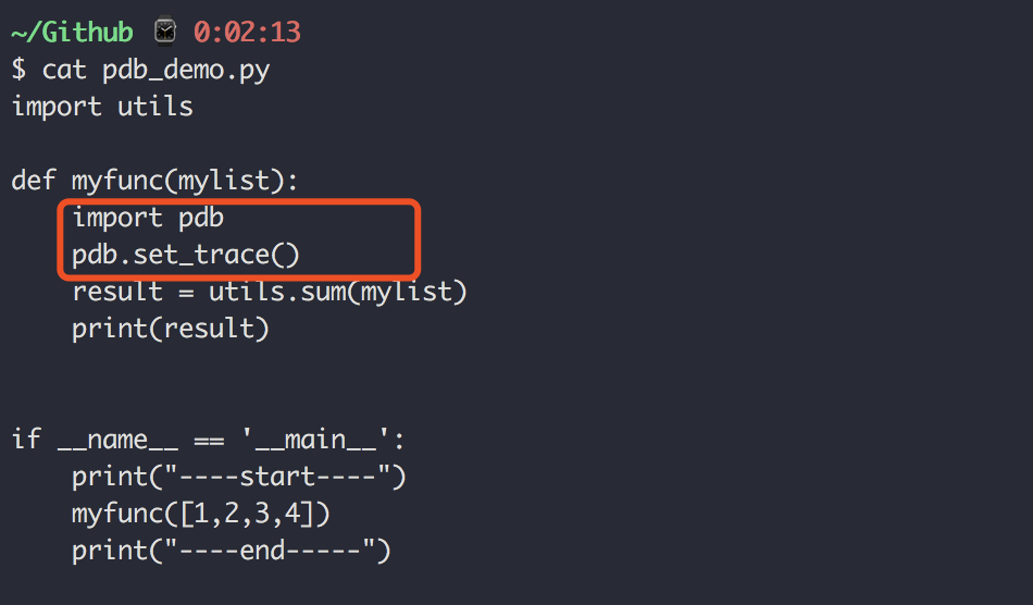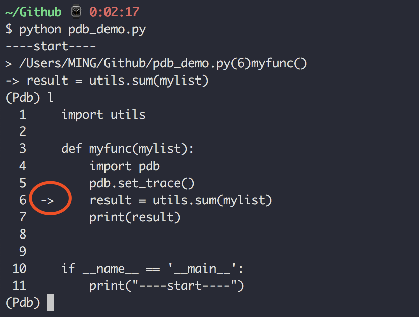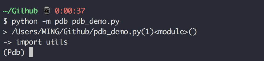 然后执行时,也不需要再指定-m pdb了,直接python pdb_demo.py ,就会直接在这个地方暂停。