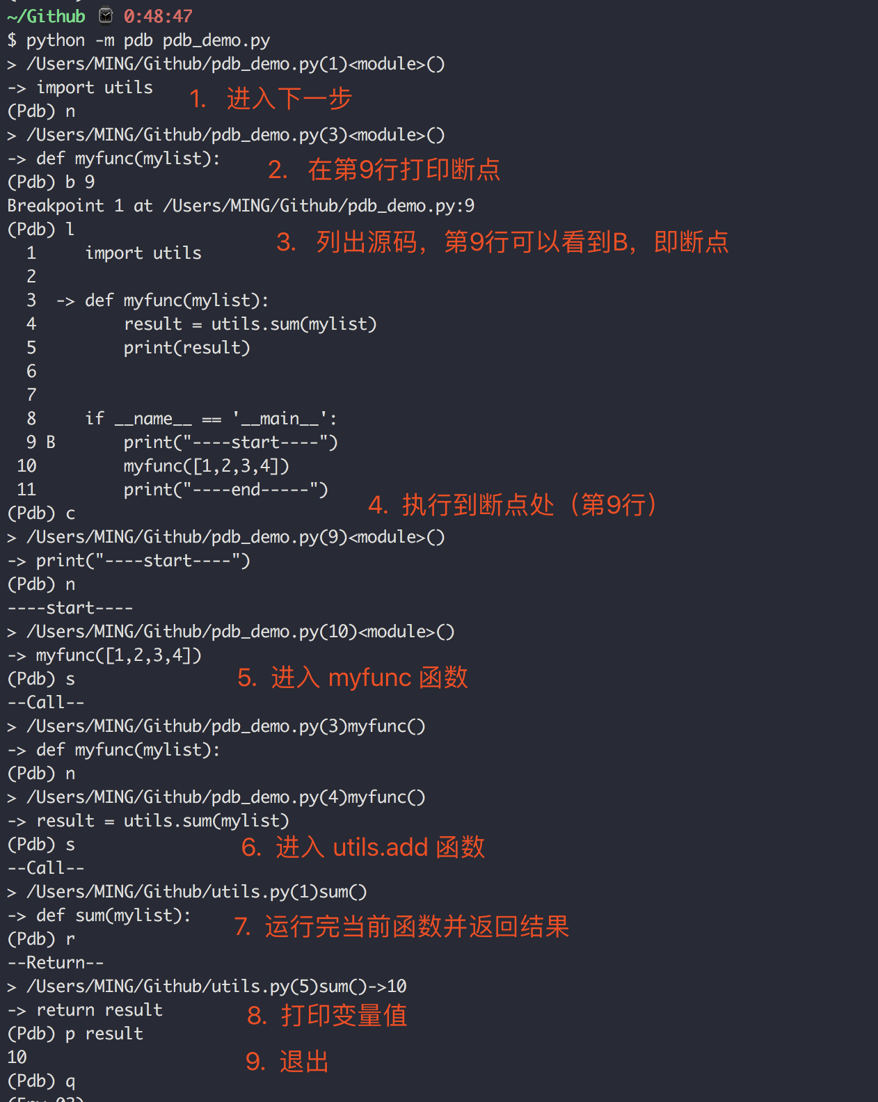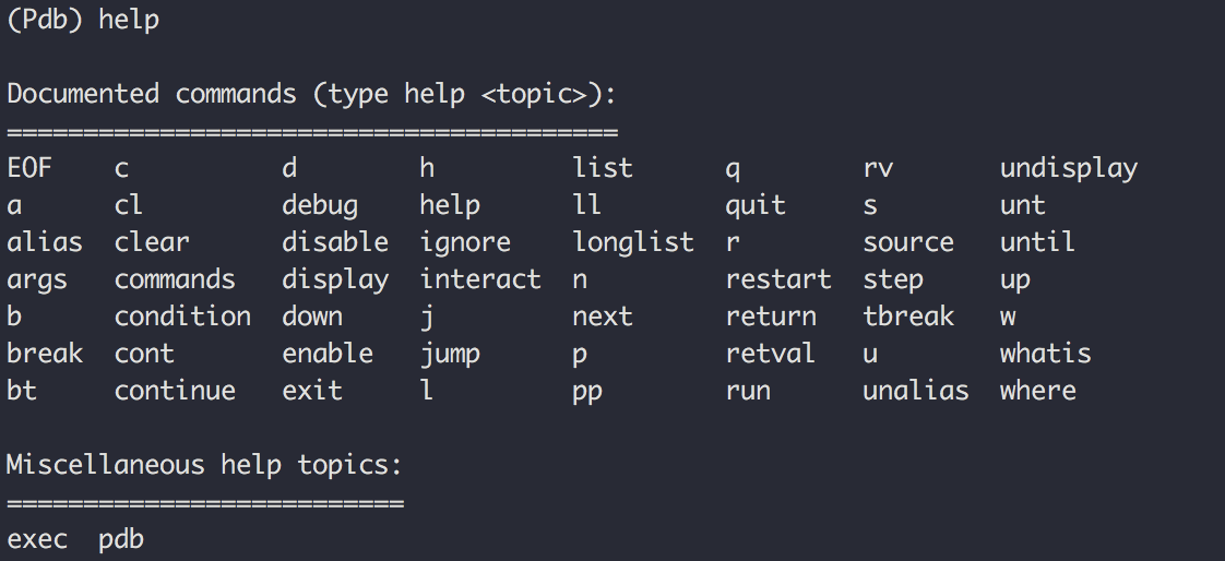 其上全部是我翻译自官方文档,原文在这里:https://docs.python.org/3/library/pdb.html