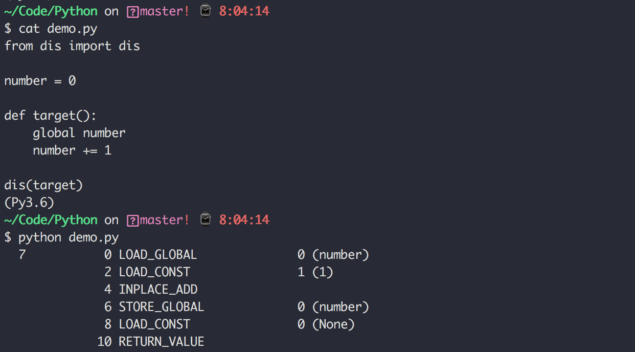 当我们还是无法确定我们的代码是否具有原子性的时候,可以尝试通过 dis 模块里的 dis 函数来查看