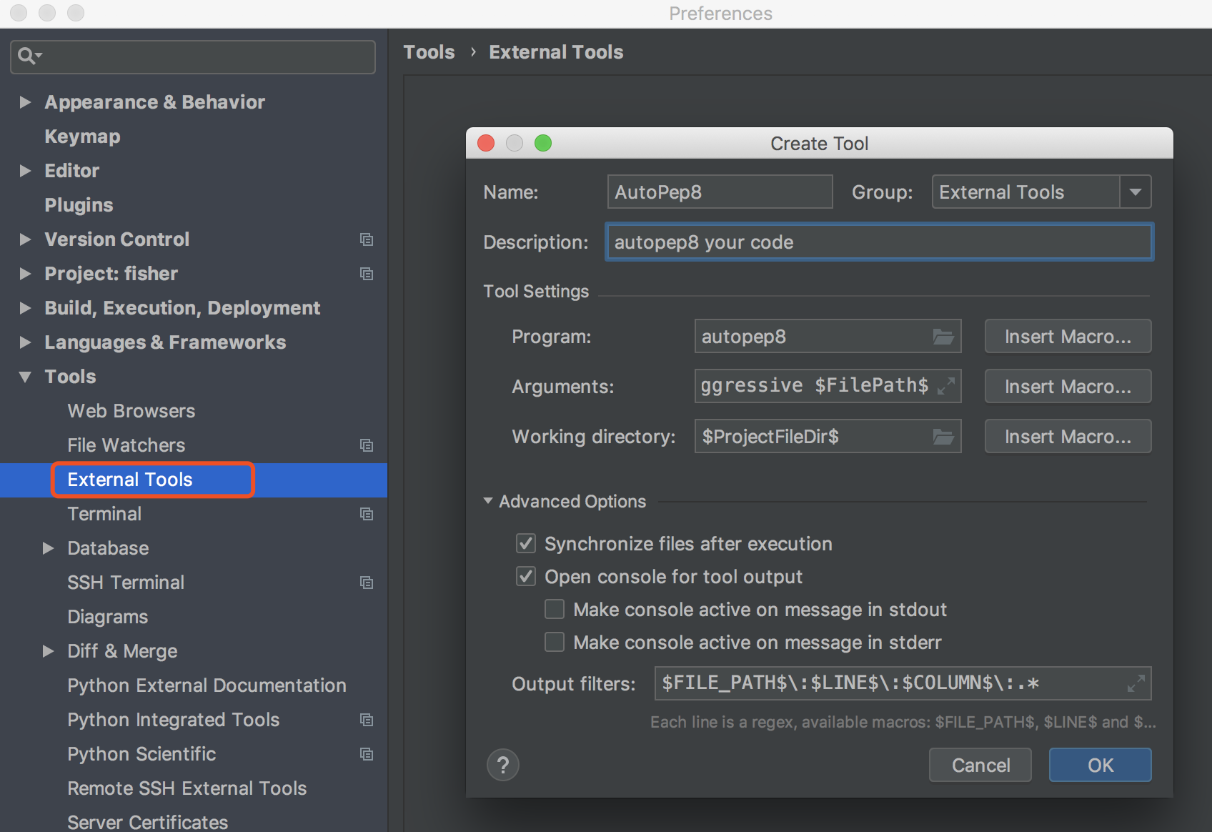 然后在 PyCharm 导入这个工具,具体设置如下图