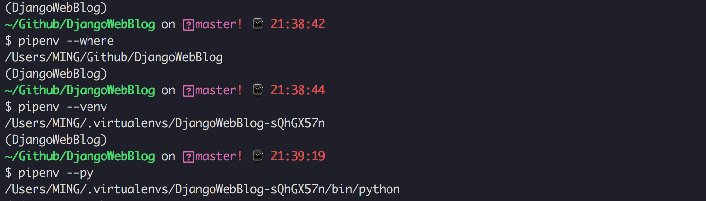 $ pipenv --three # 相当于 pipenv --python /usr/bin/python3