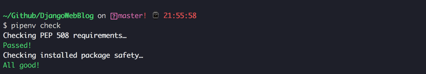 有的python第三方包旧版本会有安全漏洞,使用 pipenv check 可以检查安全漏洞。