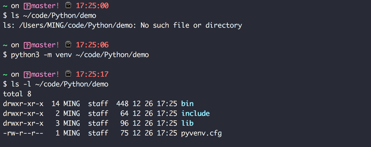 创建完成后,在你所指定的目录下会有一个 pyvenv.cfg 的配置文件,它记录着虚拟环境的基本信息,包括你使用的 Python 的家目录,还有当前虚拟环境的 Python 版本,是否开启使用系统的 site-packages 模块,如果开启了,那么当你就可以直接使用系统中已经装过的第三方模块,但是你在虚拟环境下装的模块就不能被其他地方的程序使用。
