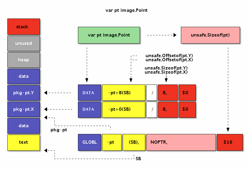 我们已经多次强调,在 Go 汇编语言中变量是没有类型的。因此在 Go 语言中有着不同类型的变量,底层可能对应的是相同的内存结构。深刻理解每个变量的内存布局是汇编编程时的必备条件。