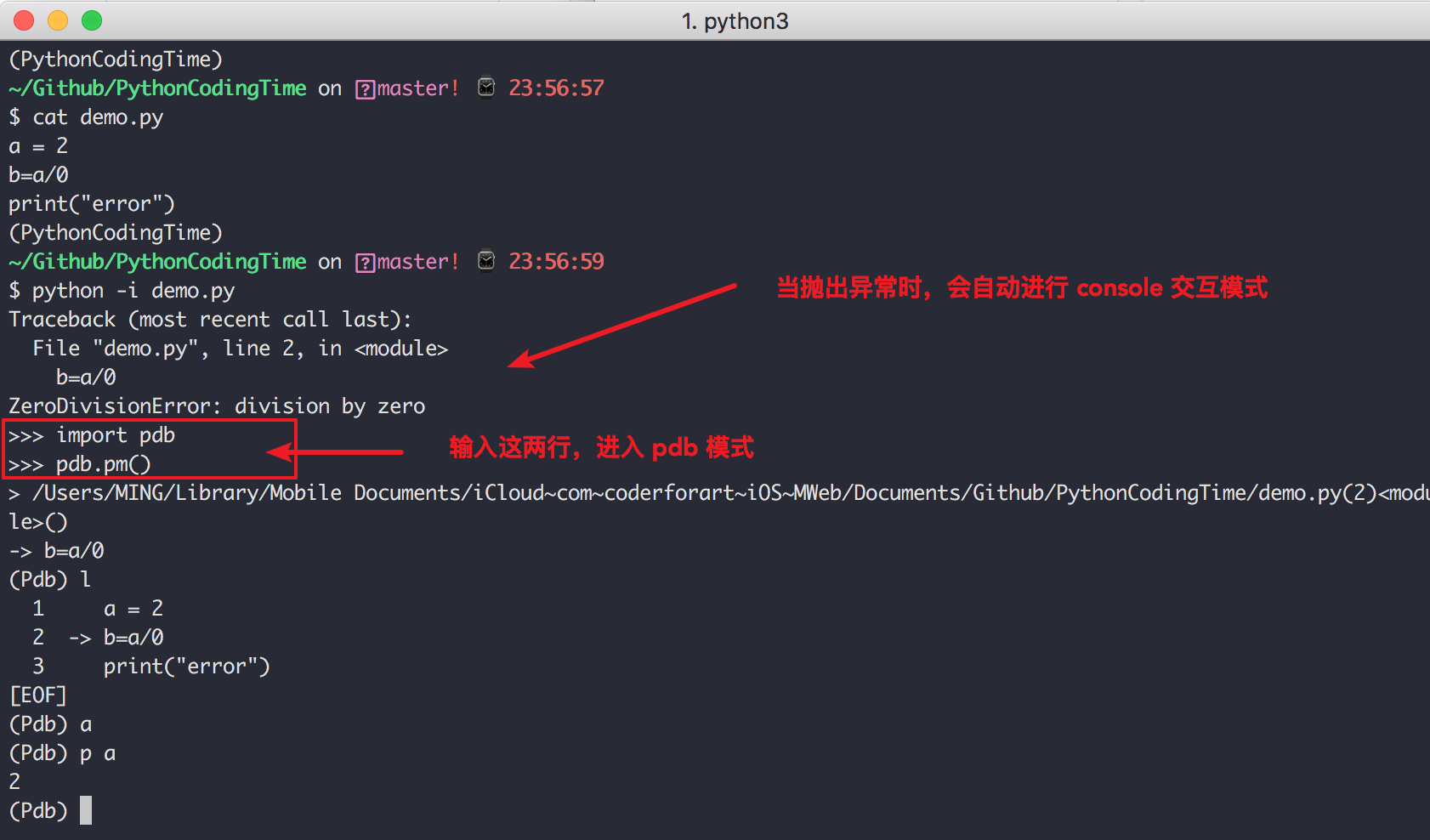 如果你和我一样,习惯使用 pdb 进行调试的话,一定有所体会,通常我们都要先把 pdb.set_trace() 去掉,让程序畅通无阻,直到它把异常抛出来。
