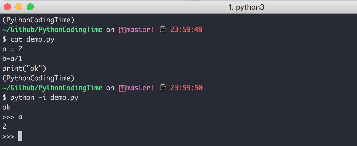 从下图可以看出,程序执行完成后会自动进入 console 交互模式。