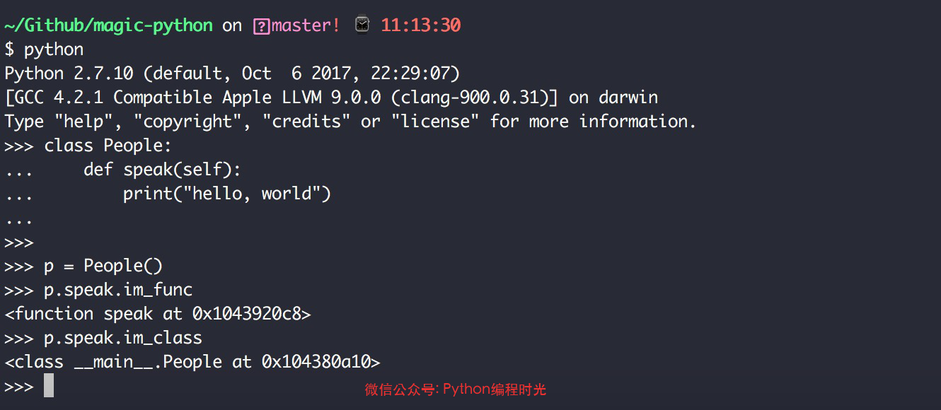 有 Python 2 使用经验的朋友,可以会知道类实例的方法,都有 im_funcim_class 属性,分别指向了该方法的函数和类。