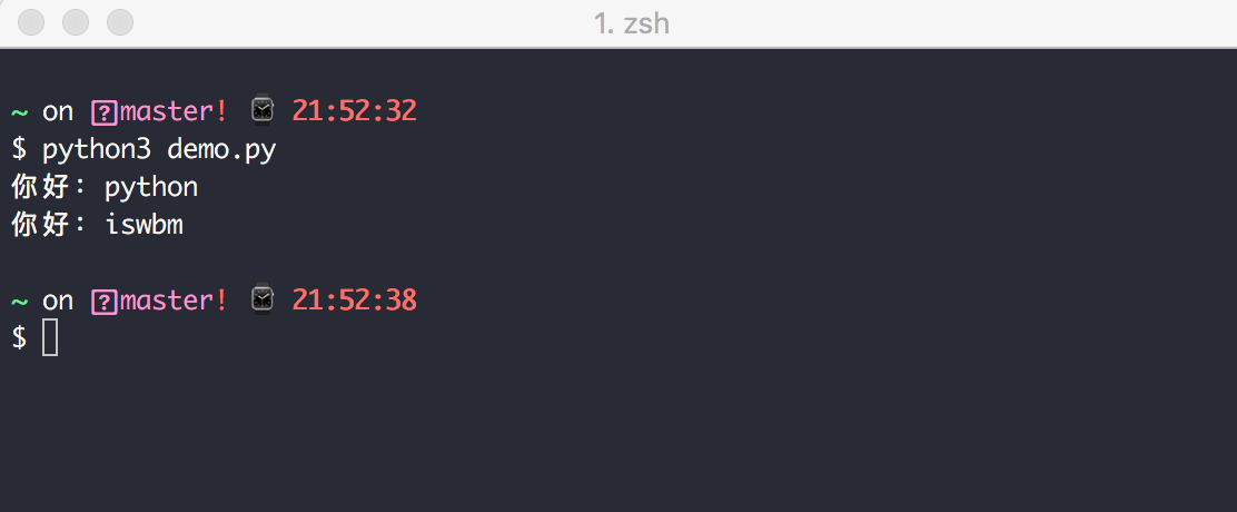 代码运行以后,会卡在sch.run()这里,5秒钟以后执行do_work('iswbm'),运行效果如下图所示:
