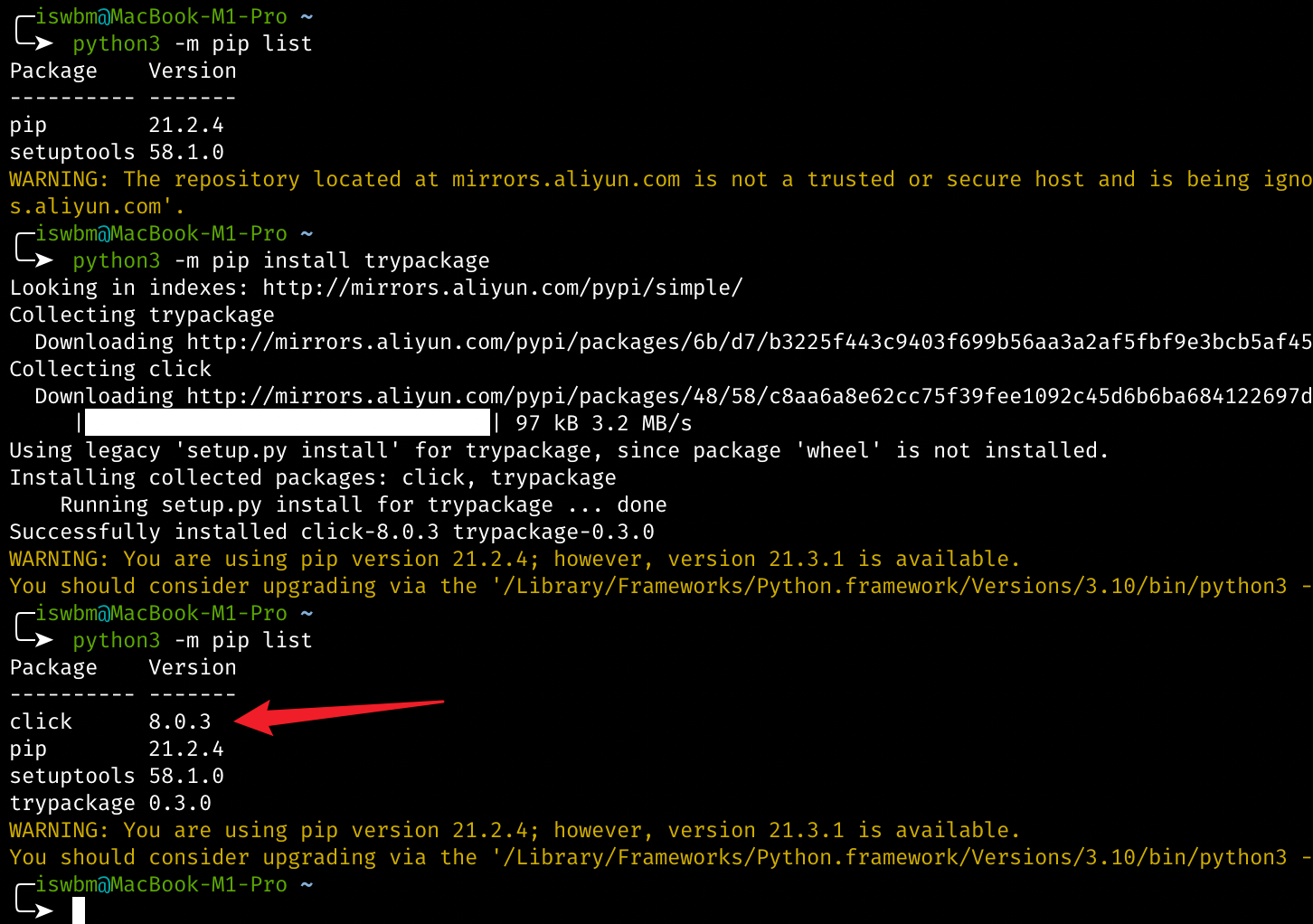 可以看到 trypackage 只依赖一个 click 命令行库,还是很轻量的